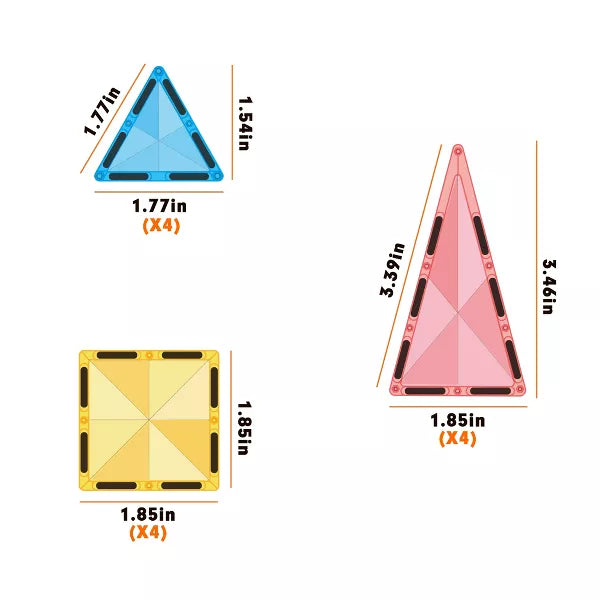 12 piezas magnéticas de Picasso Tiles, perfectas para entretenimiento en viajes.